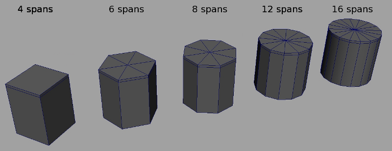 In most situations, 6 spans are enough to create accurate circular shapes, and 4 is often enough to approximate background objects.