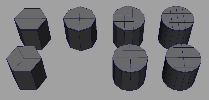 Note that all these cylinders use only quad faces, and all the vertices in the caps have a valence of 4 (except the bottom left example)