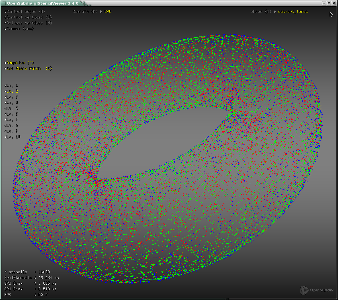 Other examples : glViewer, glFVarViewer, glEvalLimit, glStencilViewer, glPtexViewer, glPaintTest, glShareTopology, dxViewer, dxPtexViewer,