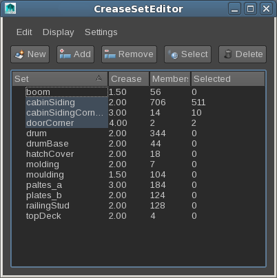 Complex hard-surface models (giant robots, vehicles, buildings...) are likely to tag large number of edges : it is extremely useful to organize these edges/edge loops into logical sets with descriptive names. Edges or vertices in a crease set group all share the same sharpness value.